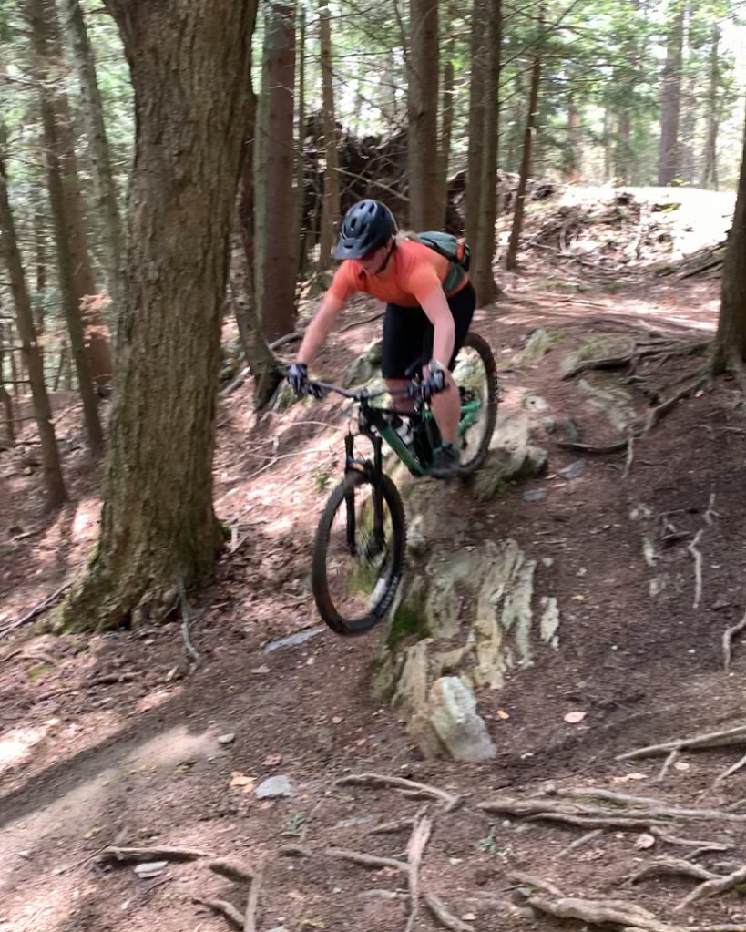 She coaches children and women through her work with VMBA, Stowe Mountain Bike Academy, and more.